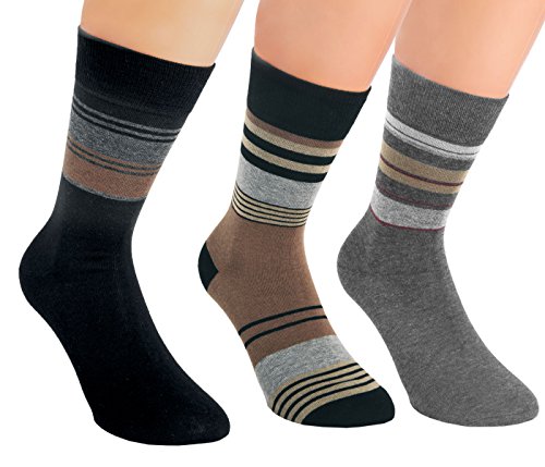 VITASOX Men Socks Fashion 6 Pair Pack With this set you will receive 6 pairs of socks in 3 different designs. The wearing comfort is due to the skinfriendly and fine cotton especially pleasant. The fine elastane thread gives perfect fit. These socks are made with a nice wide comfort top band. The hand linked toe prevents any pressure points in your shoe. Long durability will be achived by strengthened heel and toe area.